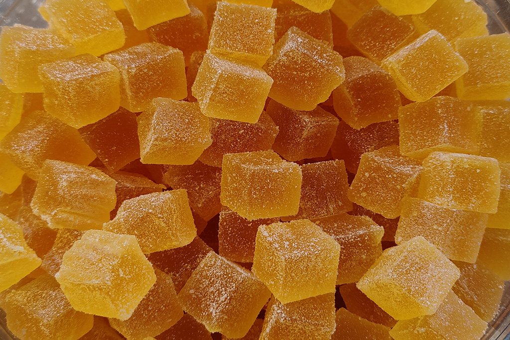 Vår apelsinmarmelad har en fast konsistens som påminner om klassiska gröna kulor, men med tydlig smak av solmogen apelsin. Ett enkelt, citrusfriskt godis som passar både som vardagssnacks och till festligare tillfällen.
